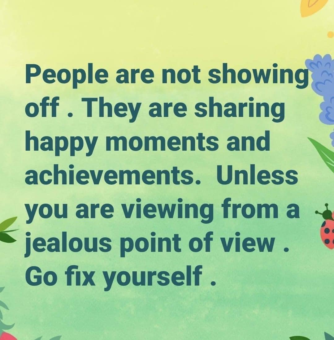 A happy soul doesn’t get jealous of others happiness. No Jealousy