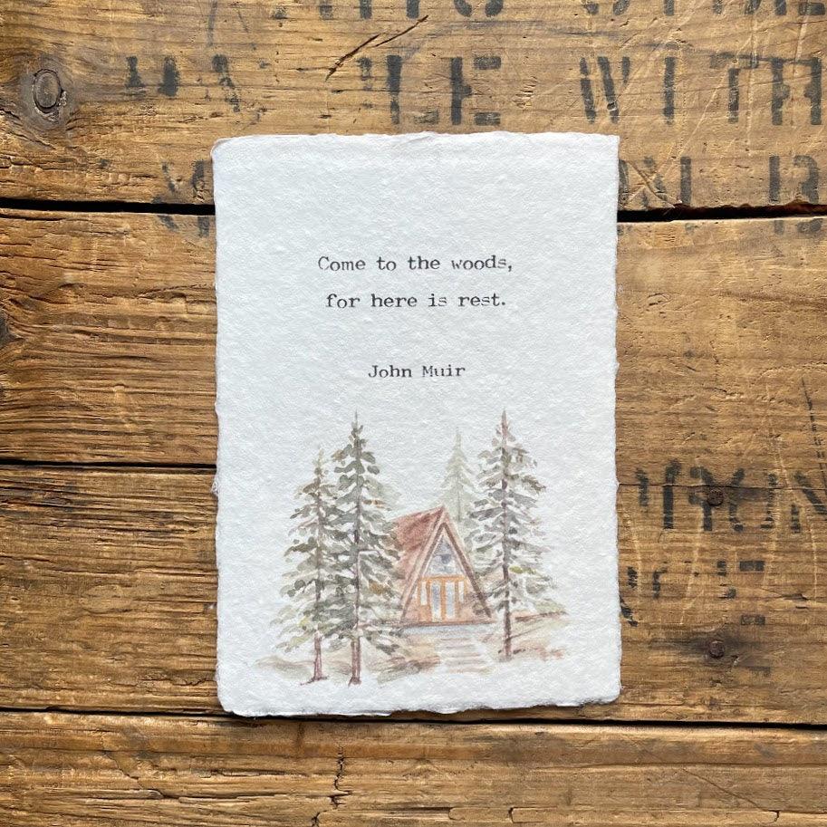 Come to the woods, for here is rest John Muir quote on handmade