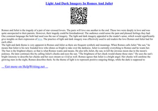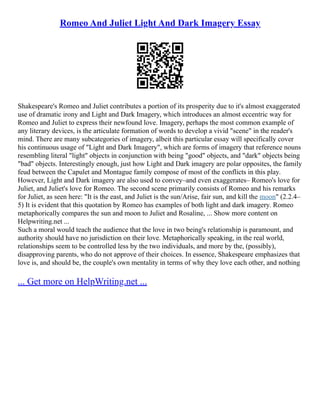 Romeo And Juliet Light And Dark Imagery Essay | PDF